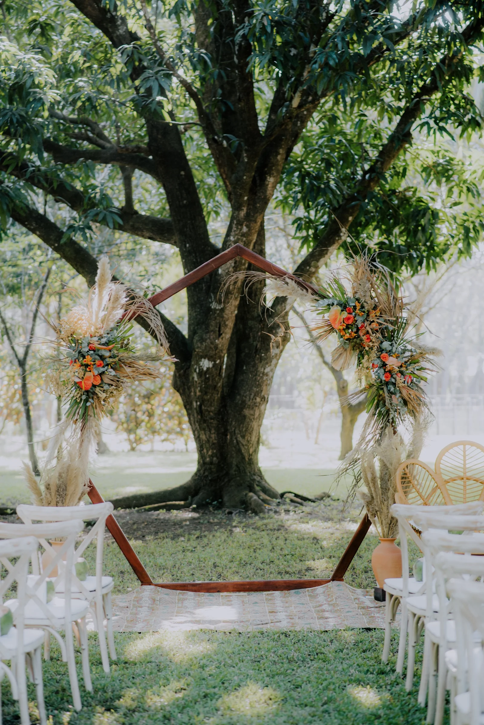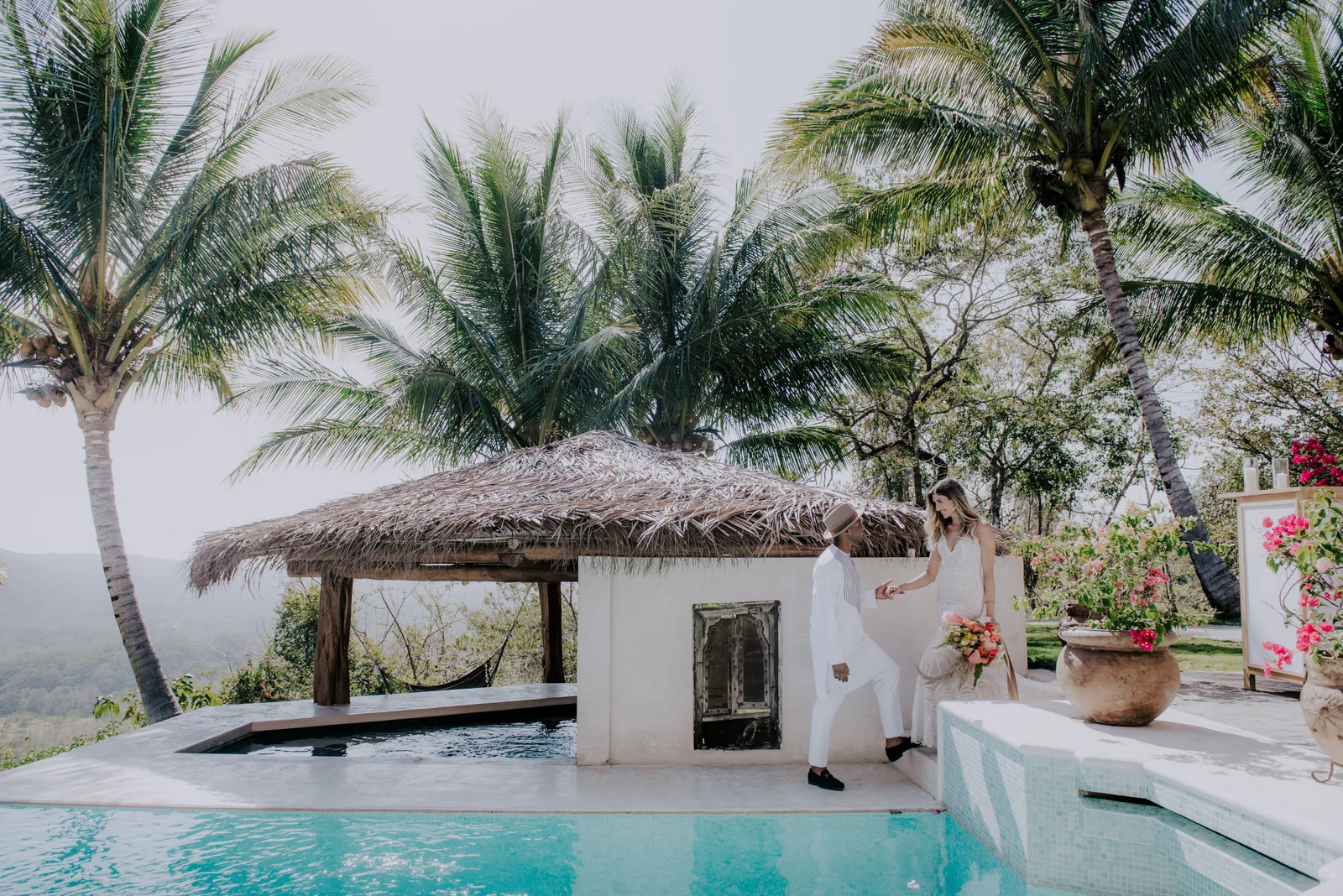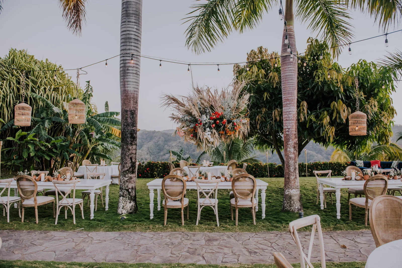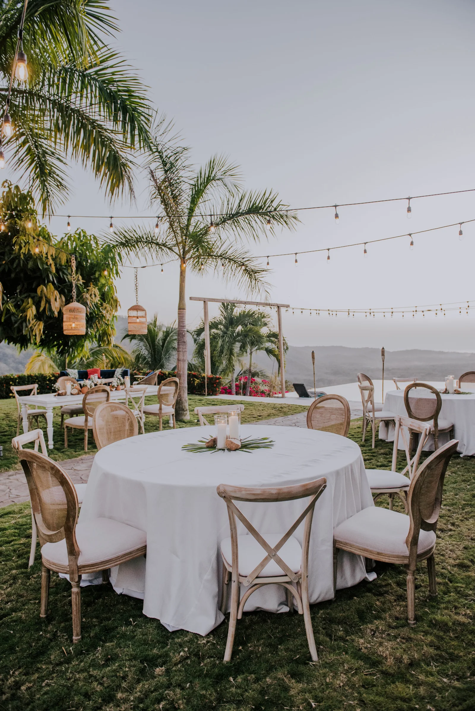 A dusty beach town called Nosara in Costa Rica, became the perfect backdrop for this dream, though the journey to get there was anything but smooth. The choice of destination was a labyrinthine process! With my network in Toronto, planning locally could have easily turned into an obsession over decor details. I knew this would consume me and test Soul's patience. Therefore, opting for a destination wedding was my way to surrender control, and boy, did it work! Initially, we envisioned France, then Nicaragua where we have property and where we got engaged. However, political unrest redirected our compass, leading us to a breathtaking estate atop a mountain called Finca Austria. This venue offered multiple houses to host our nearest and dearest, set amidst lush, remote landscapes with panoramic views that left us breathless. It was a logistical puzzle, yes, but one that gave our guests stories to cherish. In the end, all 75 attendees from France, Canada, the US, and Denmark arrived safely and with an adventurous story in the books.
