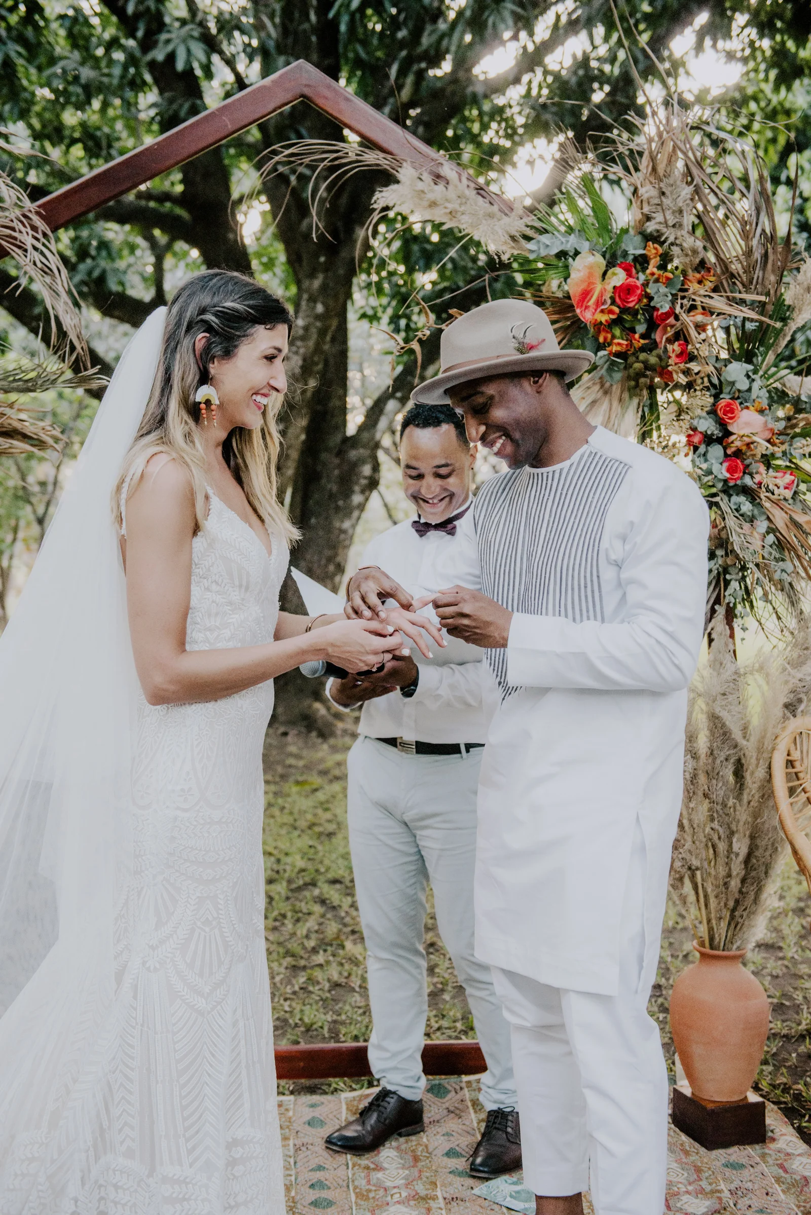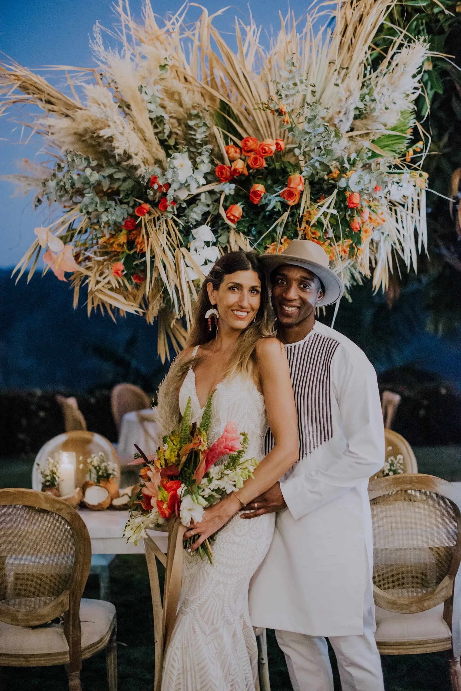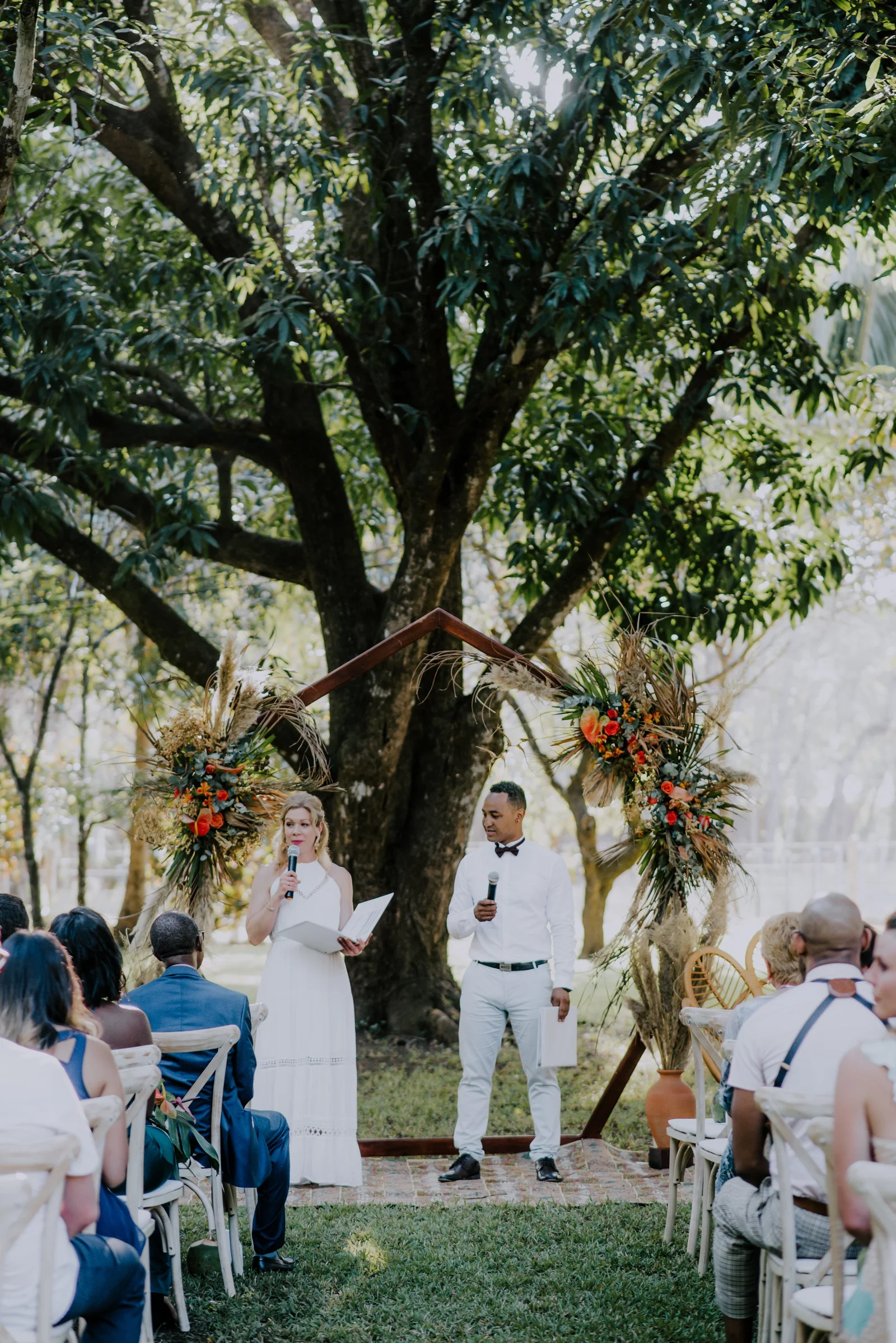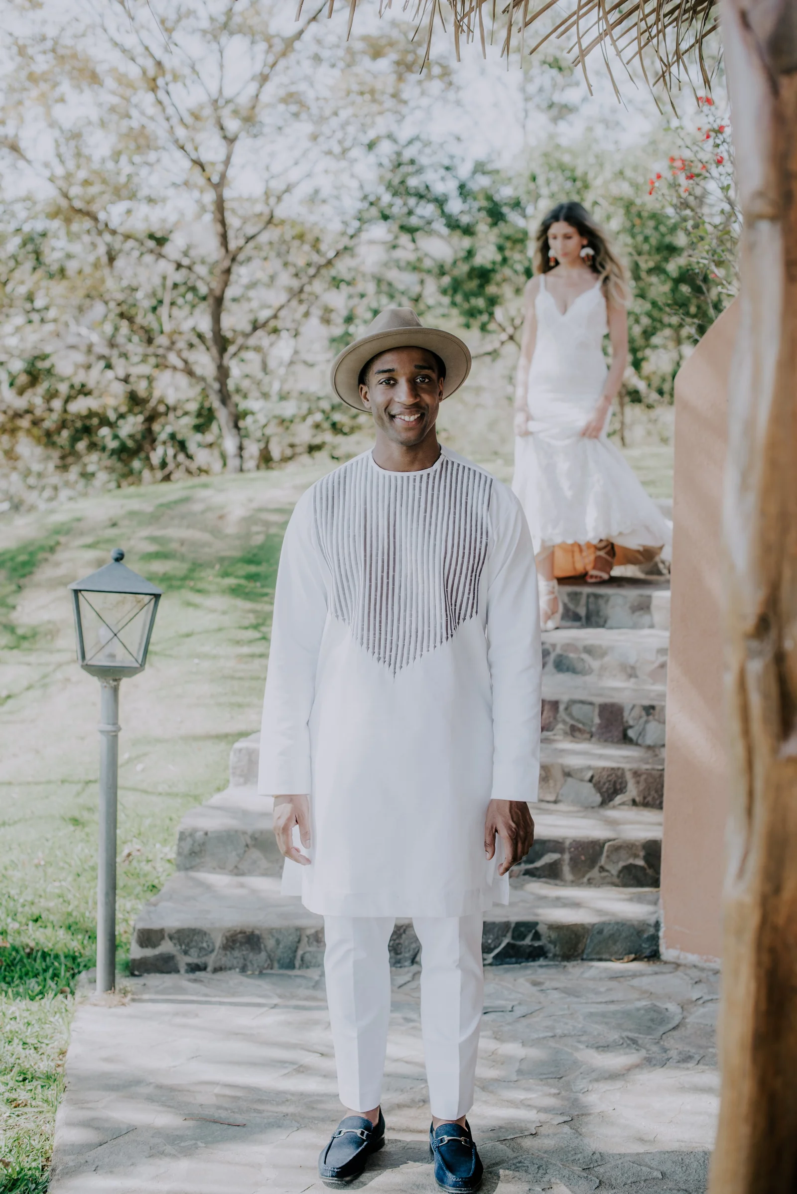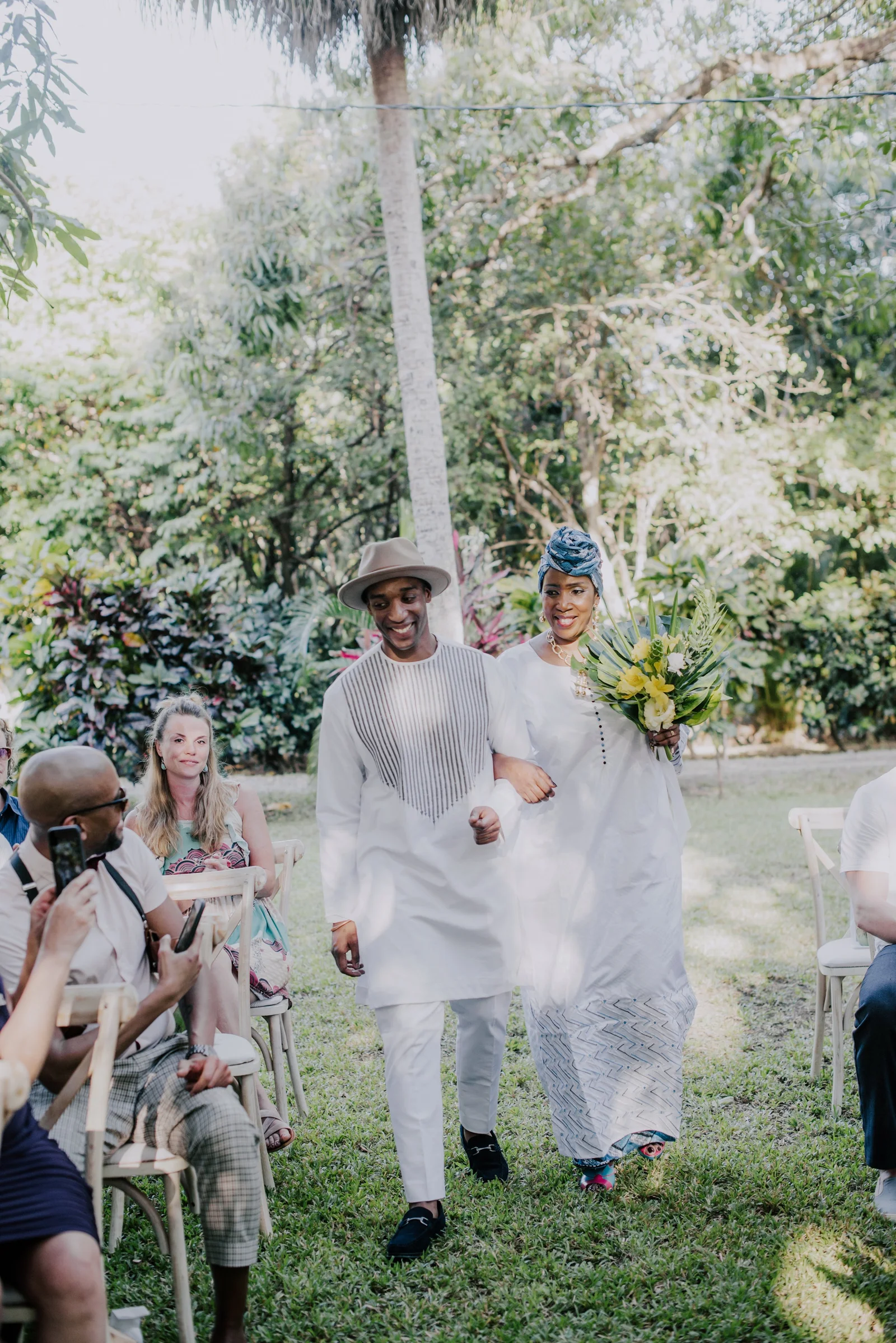 Planning, Art Direction, Stationery Design, Menu’s, Guest Favour Bags, Bouquets + Headpieces by April: Olive Studio // Photography by Lelania: Olive Studio + Scott Ramsay // Wedding Coordination by Alexa: Weddings Nosara // Venue, catering, lighting: Finca Austria // Ceremony + Reception Flowers by Phyllis Kramer // Officiants by Leslie + Serge: @smaleles + @eric_gnago // Stationery printing: The Printing House // Music by Yannick: @djkaynix // MC by Ihab: @ibokinz // Furniture Rentals: Costa Mesa Event Rentals // Bride’s Hair + Makeup by Eunice: @euni_t // Bride’s Lashes by Kara: Bright Eyes by Kara // African Dress by Nagat: @nagatb // Wedding Dress by Allure Bridals: Ferre Sposa // Bride’s Shoes: Forever Soles // Bride’s Clutch: Macrame Wonderland AU // Groom’s Shoes: Stacy Adams // Groom’s Dashiki: @etsy // Bride’s Engagement Ring: Blu Boho // Bride + Groom’s Wedding Bands: Made You Look // Wedding Day Earrings: Coal Miner’s Daughter // Bridesmaids Makeup by Veronica: @belziquiroa // Bridesmaids Hair by Cherie Jin Hae // Desserts: @nosaradulce