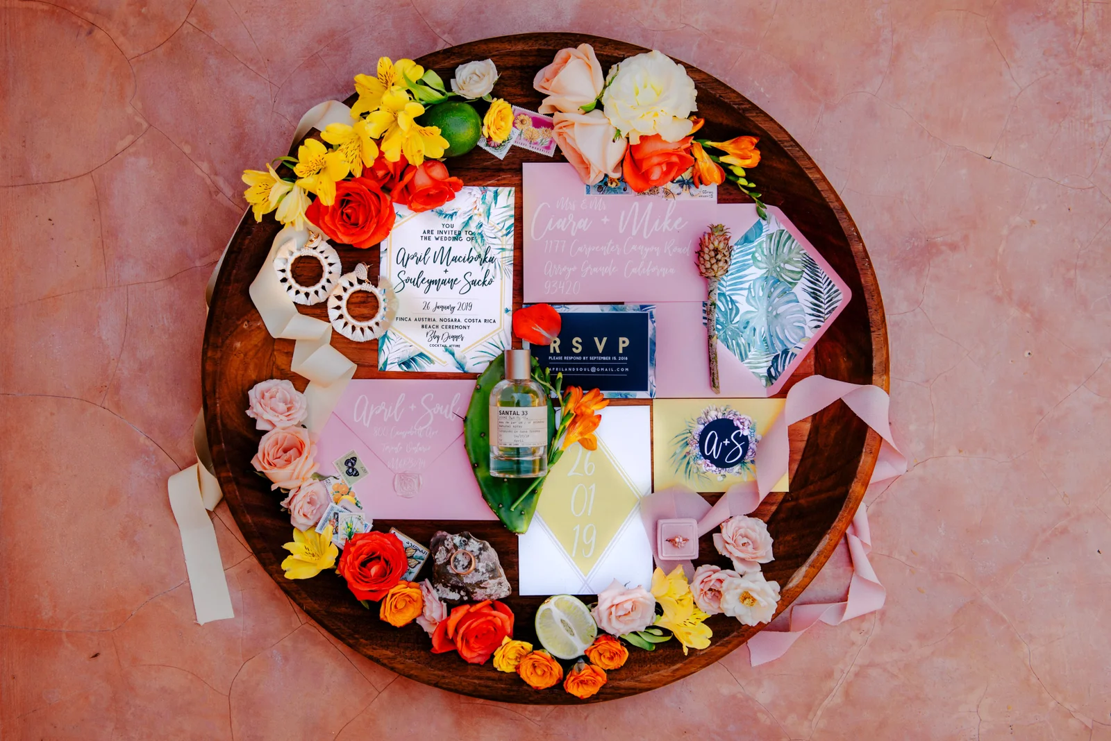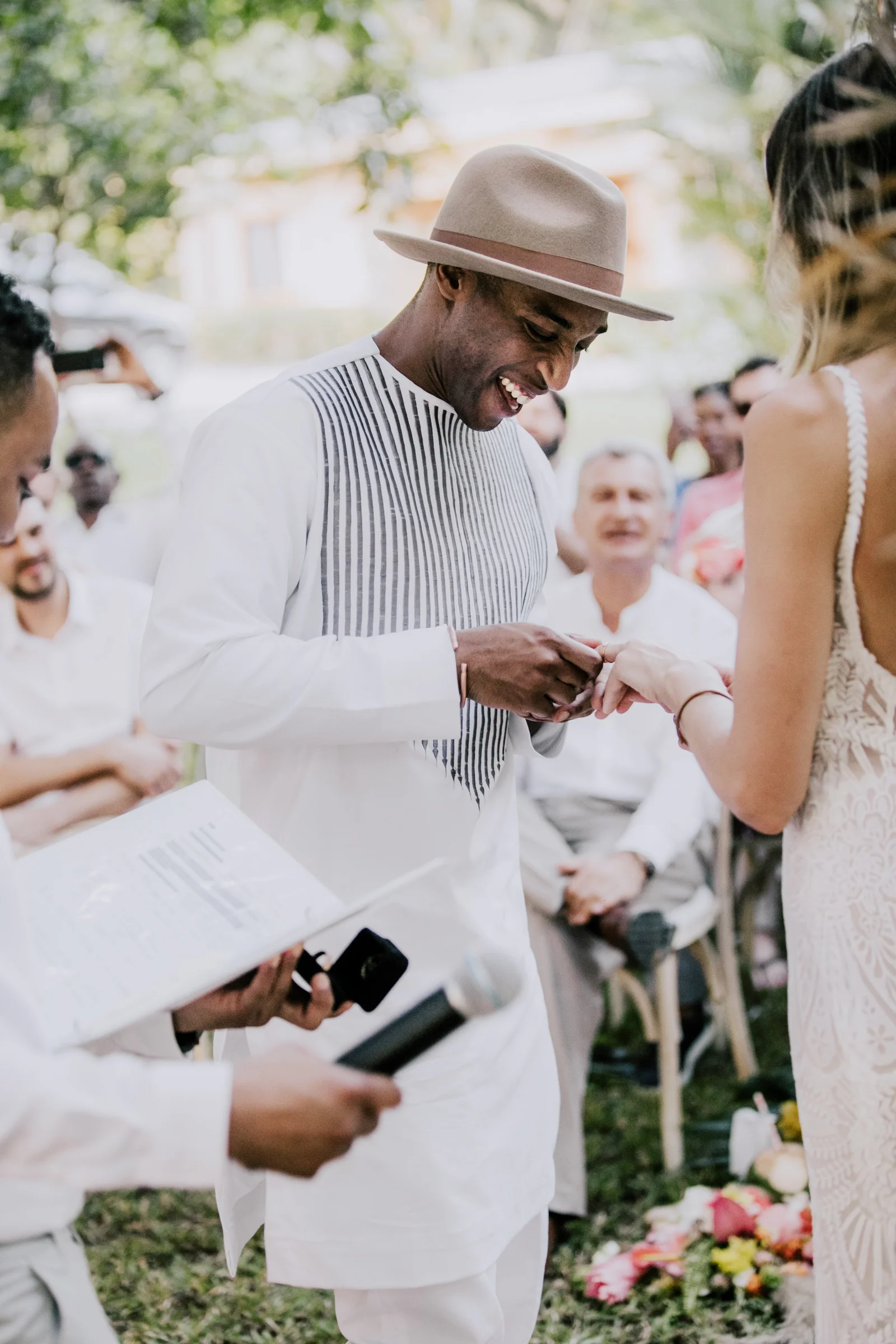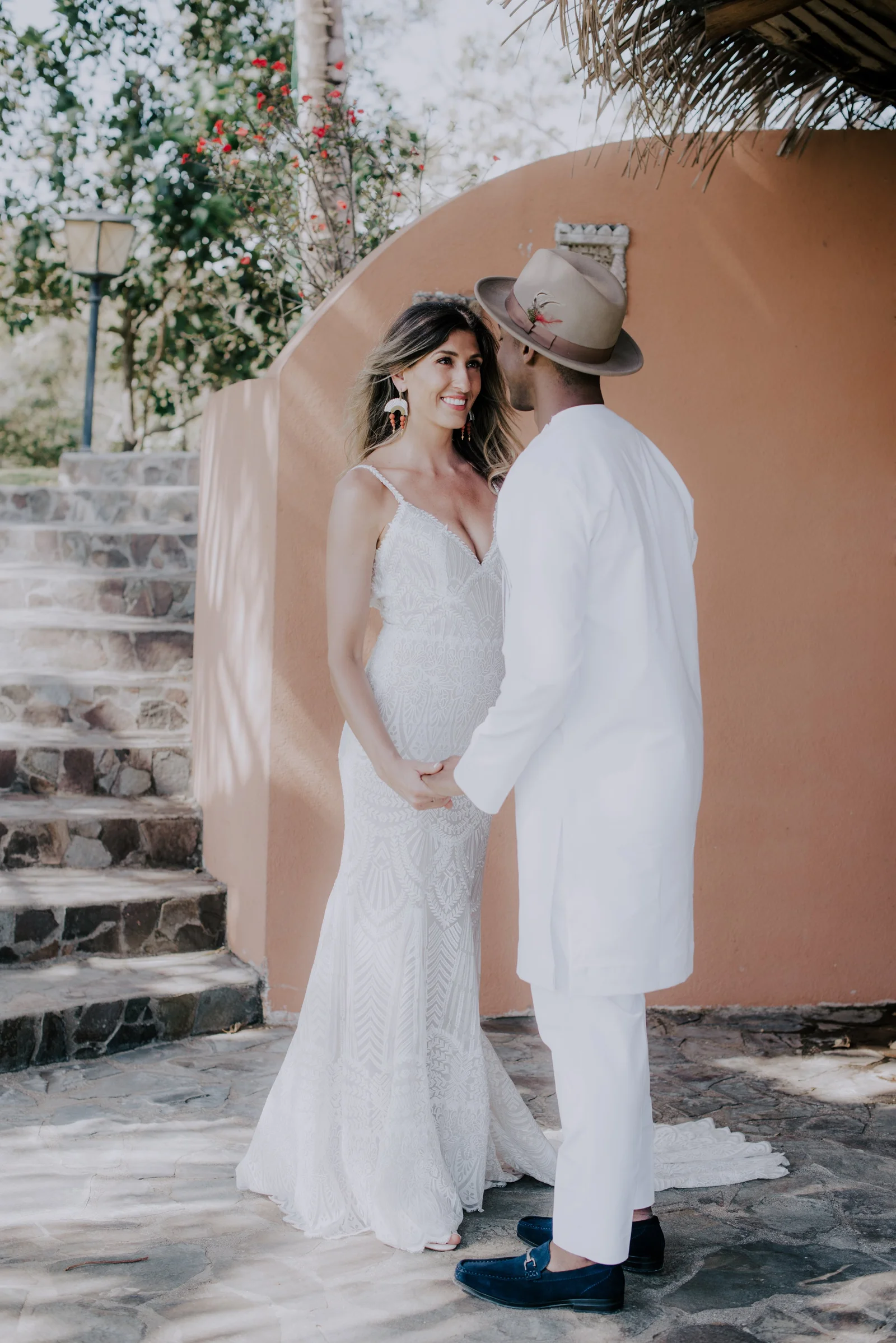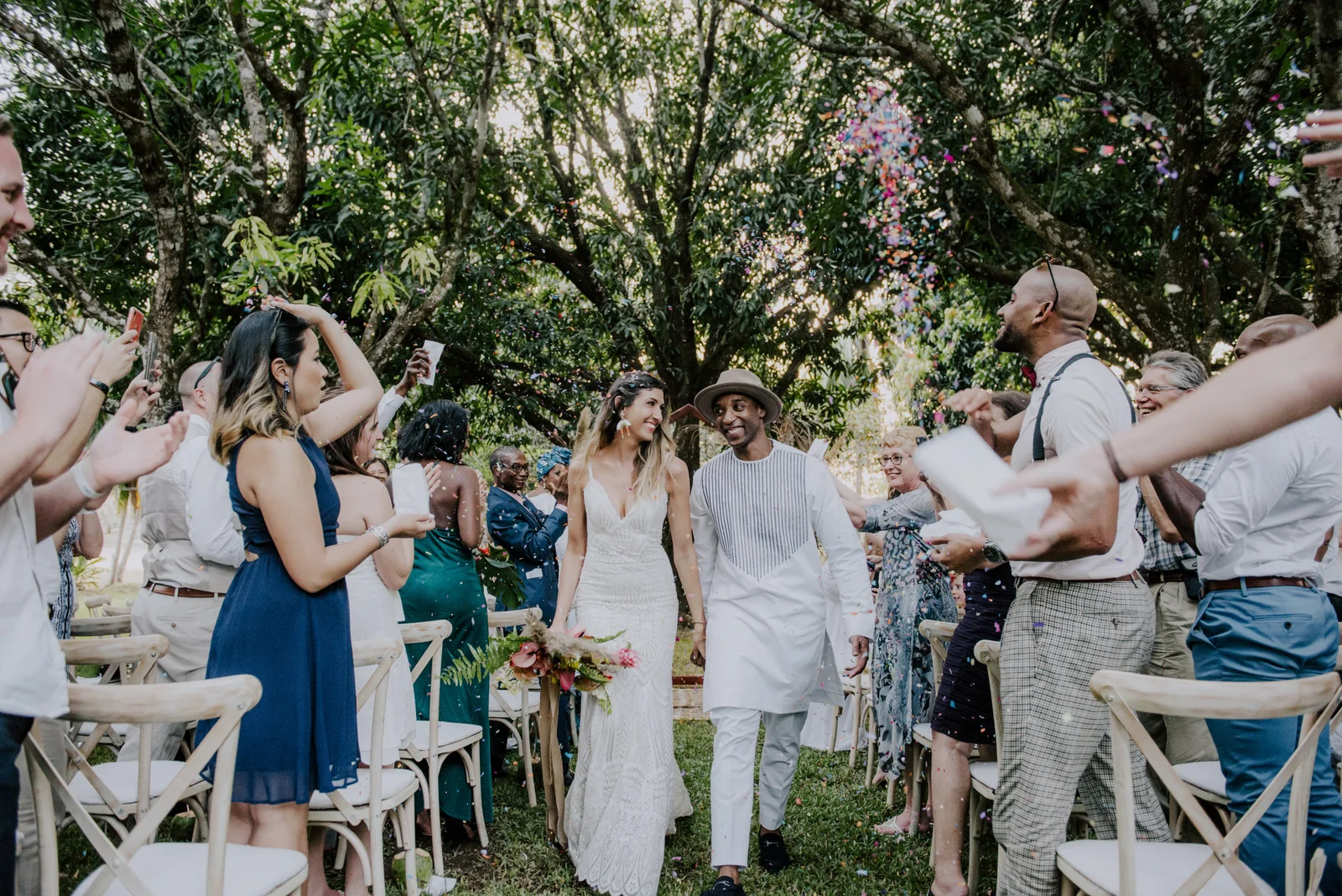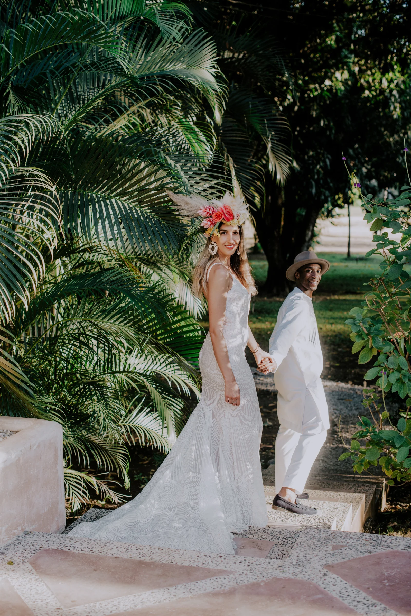 Planning, Art Direction, Stationery Design, Menu’s, Guest Favour Bags, Bouquets + Headpieces by April: Olive Studio // Photography by Lelania: Olive Studio + Scott Ramsay // Wedding Coordination by Alexa: Weddings Nosara // Venue, catering, lighting: Finca Austria // Ceremony + Reception Flowers by Phyllis Kramer // Officiants by Leslie + Serge: @smaleles + @eric_gnago // Stationery printing: The Printing House // Music by Yannick: @djkaynix // MC by Ihab: @ibokinz // Furniture Rentals: Costa Mesa Event Rentals // Bride’s Hair + Makeup by Eunice: @euni_t // Bride’s Lashes by Kara: Bright Eyes by Kara // African Dress by Nagat: @nagatb // Wedding Dress by Allure Bridals: Ferre Sposa // Bride’s Shoes: Forever Soles // Bride’s Clutch: Macrame Wonderland AU // Groom’s Shoes: Stacy Adams // Groom’s Dashiki: @etsy // Bride’s Engagement Ring: Blu Boho // Bride + Groom’s Wedding Bands: Made You Look // Wedding Day Earrings: Coal Miner’s Daughter // Bridesmaids Makeup by Veronica: @belziquiroa // Bridesmaids Hair by Cherie Jin Hae // Desserts: @nosaradulce
